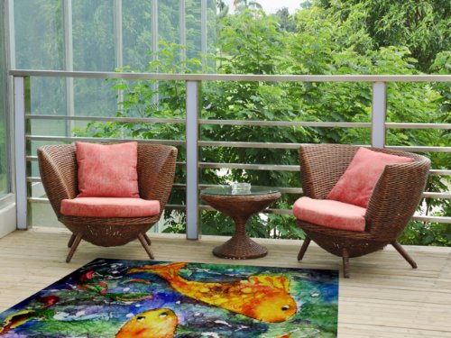 Kess InHouse Rosie Brown "Fantasy Fish" Indoor/Outdoor Floor Mat, 4-Feet by 5-Feet