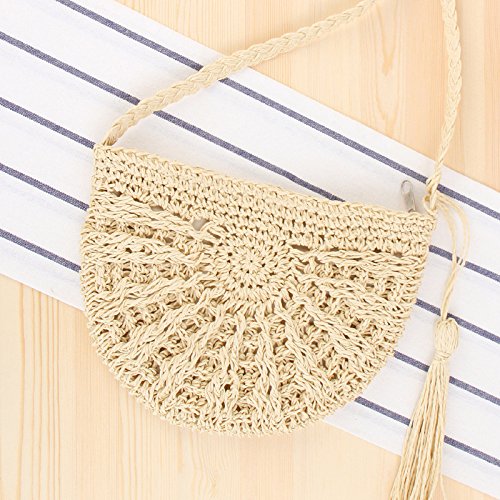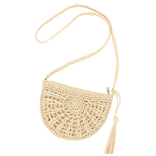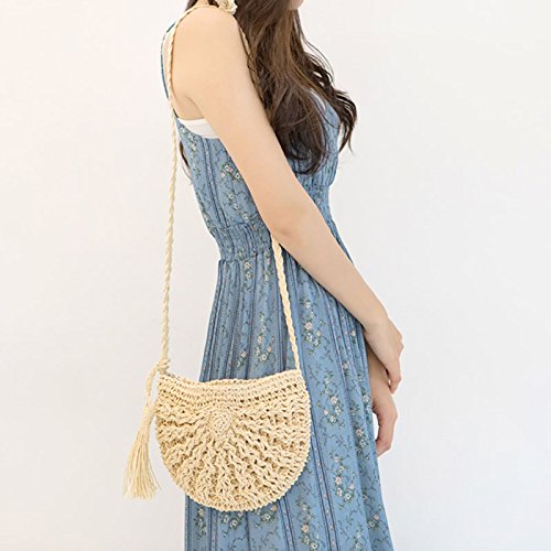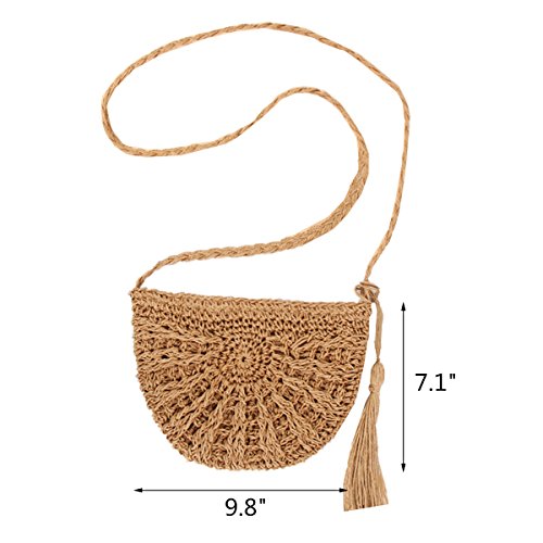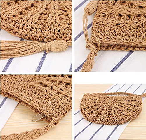 Andear Womens Casual Straw Woven Bag Beach Vacation Shoulder Bag Travel Crossbody Bag With Tassels