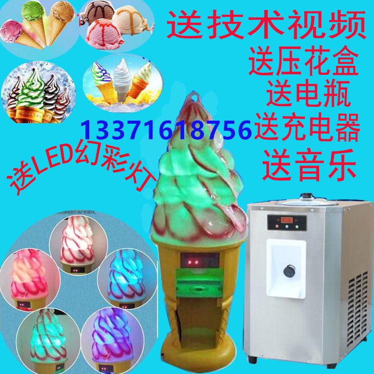 整套设备包括: 硬质冰淇淋机一台、电动动感冰车、冰淇淋成型机、冰淇淋专用冷柜、进口冷凝剂一箱、压花盒100个、蓄电池、充电器一套,挖勺两个,打蛋器两个,冰淇淋粉两代。