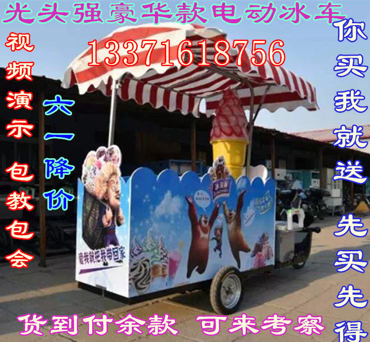 电动豪华款:电动车带PVC彩板流动冰车