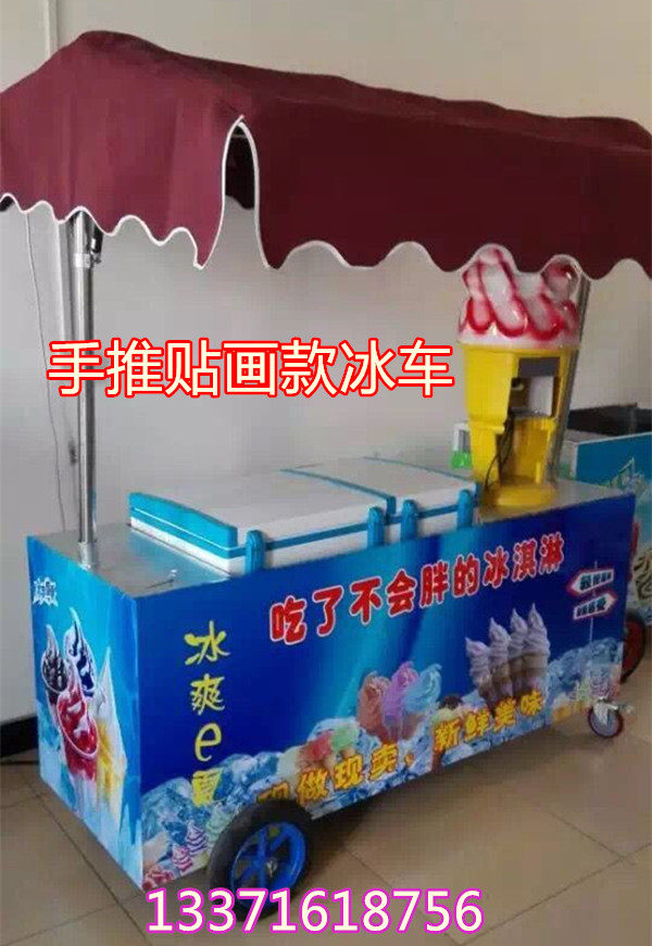 手推豪华款:手推车式带PVC彩板流动冰车