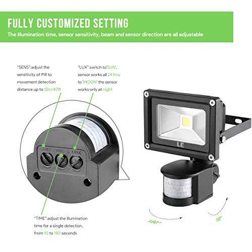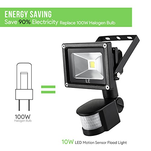 LE 10W Super Bright Motion Sensor Flood Light, Outdoor LED Flood Lights, 700lm, 100W Equivalent, 6000K Daylight White, Waterproof LED Security Light, PIR Floodlight, Basement Light