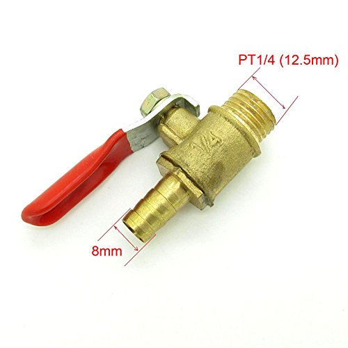 Brass Pneumatic Ball Valve 1/4" PT to 8mm Hose ID Barb w/ Lever Handle Pack of 5
