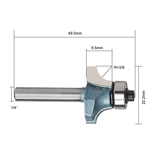 EnPoint® Woodworking Solid Carbide Top Ball Bearing Beading Router Bit 1/4" Shank 3/8" Radius Cutter 3/8" Cut Height Industrial Quality Rounding Over Fillet Ball Bearing Guide Edging Router Bit