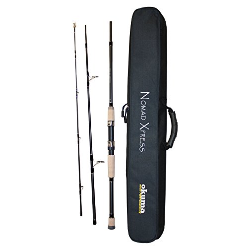 Studio : Okuma Publisher : Okuma Binding : Sports Product Description Nomad Xpress Rods Feature: Durable graphite rod blank construction; 3-section rod blank for easy break down while traveling; European spigot ferrule connection: Offers feel of a 1 pc rod; Waterproof travel bag with shoulder strap; Aluminum Oxide guide inserts; Backed by a 1 year warranty. Rod Power: Medium Heavy. Rod Taper: Medium. Rod Length: 7'. Line Weight: 10-20 lbs. 3 piece rod. Number of Guides: 6 tip. Split EVA butt with pipe reel seat and rubberized gimbal. Inshore rod. . Weighs 6.3. NTxi-S-703MH 0
