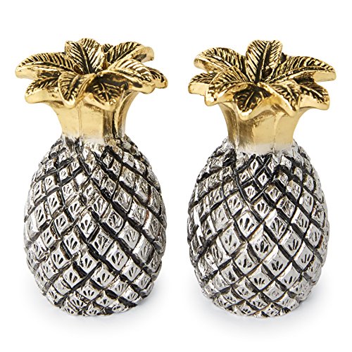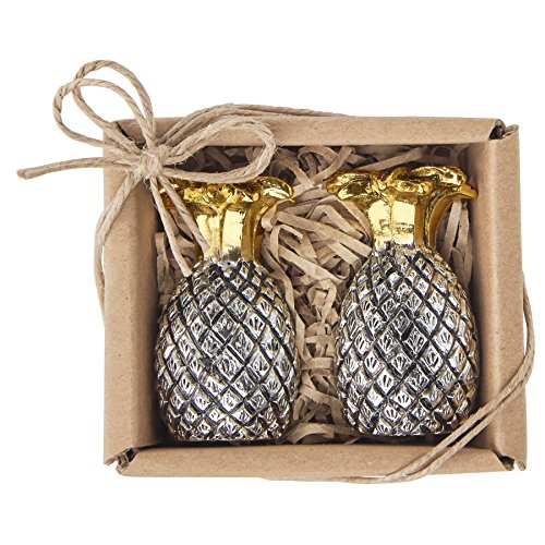 Mud Pie Pineapple Salt and Pepper Shaker Set, Silver/Gold