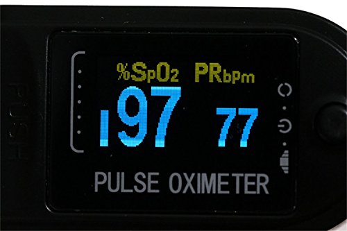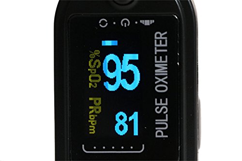 -. Feature : Pulse rate value display, bar graph display Small in volume、light in weight and convenient in carrying / Quickly Measure, your Blood's SpO2 Oxygen Saturation , Pulse Rate and Pulse Strength in 10 seconds or less displayed on its large digital OLED display.viewable in sunlight / Rotatable multidirection OLED display,view the readings at any directions, show Pulse wave, Pulse Rate, bar graph, SpO2 level and Battery level / Included: FREE Carrying Case, Lanyard, Batteries,User manual, Machine and our One-Year Warranty / NOTE: This device is for Sports & Aviation use only and is not a medical device.