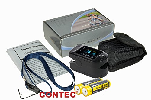 -. Title : CONTEC CMS50D Finger Pulse Oximeter, SPO2 PR Oxygen Saturation Heart Rate Monitor with Carrying Case, Lanyard,battery Black color OLED Display