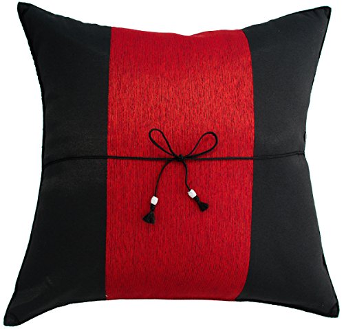 Avarada 16x16 Inch (40x40 cm) Striped Crepe Decorative Throw Pillow Case Cushion Cover for Sofa Couch Chair Bed Insert Not Included Zipper Black Red