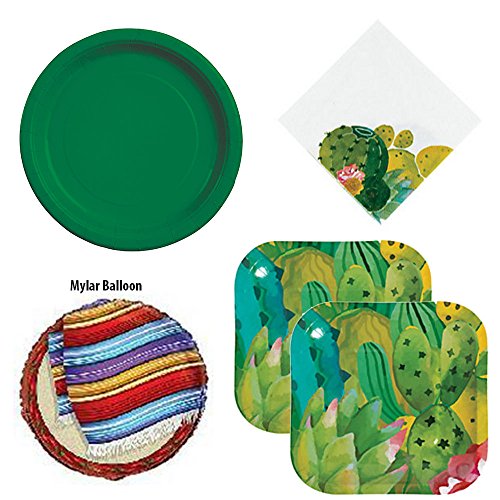 -. Title : 02 Cactus Fiesta Party supplies, large and small plates, napkins, balloon - 16 guests