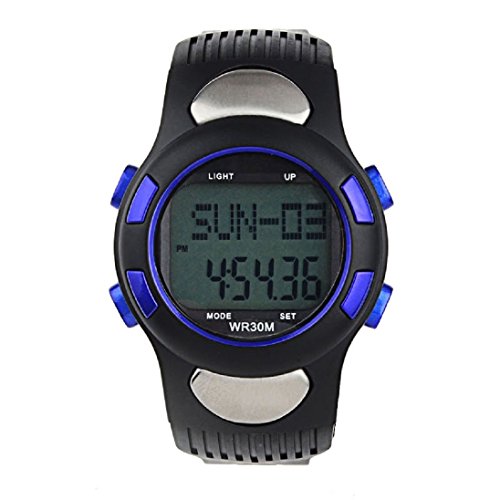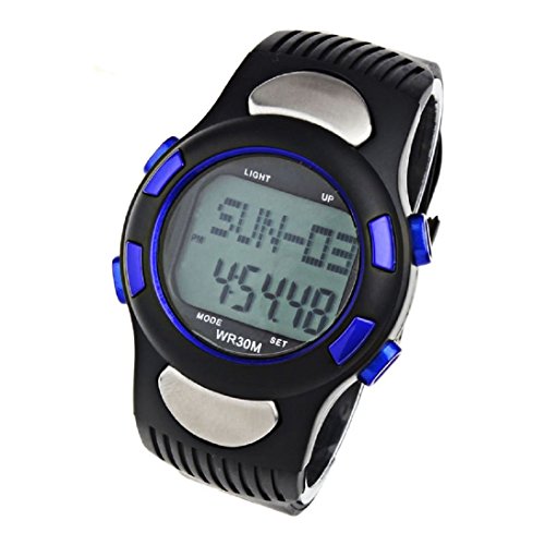 100% Brand new and high quality Material: ABS Stainless Steel Band Width: 1.8cm Band Length: 21cm Case Diameter: 4cm Normal Time: Hour Minute,Second,Day and Weekday, 12/24hr format Calendar;(Yr2000-2099) 1/100 Second Chronograph ranging from 0 to 59:59:99,with SPL function 2-set alarm;Daily alarm Hourly chime Countdown function up to 23hr.59min 50-day automatic memory storage step function Heart rate mode;Touch-on pulse measuring,showing dynamic heart rate 30-200 3 seconds EL backlight Backlight: EL or LED Three kinds of pedometer models show: total steps / time display mode → pedometer / exercise time display mode → calories / mileage display mode User information setting: Metric / Imperial → weight → step → G-Sensor sensitivity This product is very convenient and easy to use Package Include: