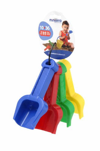 Studio : Miniland Educational Corp Publisher : Miniland Educational Corp Binding : Toy Product Description Babies love to dig and scoop! They'll make good use of Miniland's Baby Shovels when they're playing with sand or water. Miniland's brightly colored Baby Shovels are made in Spain and perfectly sized for baby's small hands. This set of 4 Baby Shovels gives you 1 each in yellow, blue, green and red. Durable plastic will stand up to plenty of rough and tumble outdoor play. Miniland Educational, a leading toy manufacturing company with production facilities in Onil, Spain, is known worldwide for safe, high-quality educational toys. A great deal of thought and research goes into design and production of Miniland Toys, but we never forget the importance of play! Manufactured in Spain, according to strict European Union safety guidelines. Each shovel is approximately 5-1/4" long. Suitable for children 10 months and older. 0