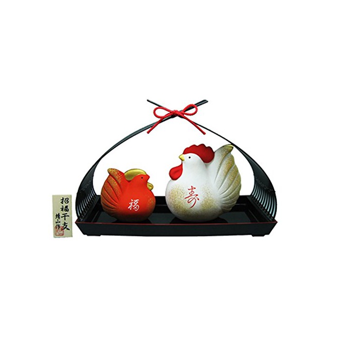 원본상품명: 招福 干支 酉 紅白 置物 親子 利休籠付き 陶器 萬古?
