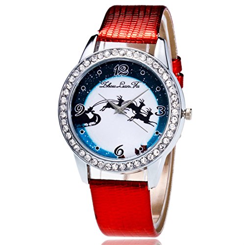 -. Title : Souarts Womens Red Artificial Leather Christmas Elk Quartz Analog Wrist Watch 22cm