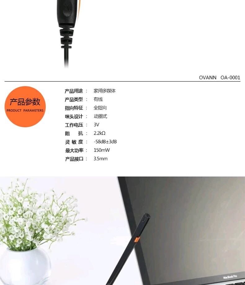 ovann/欧凡 OA-0001台式电脑麦克风 K歌话筒 YY语音聊天专用 黑色