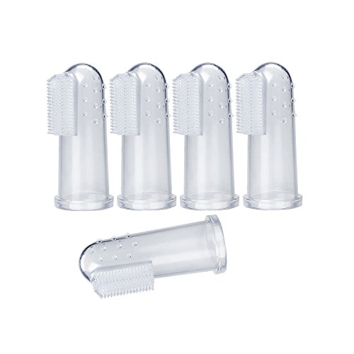 -. Title : Baby Fingertip Toothbrush 5 Pack with Case, Soft Silicone Baby Toothbrush Oral Massager, Perfect During Teething, BPA Free FDA Approved, Clear by Sago Brothers