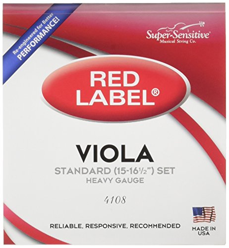Super Sensitive 4108 Red Label Viola String Set - A, D, G, C - Nickel - Standard (15 - 16 1/2-Inch) - Orchestra Gauge