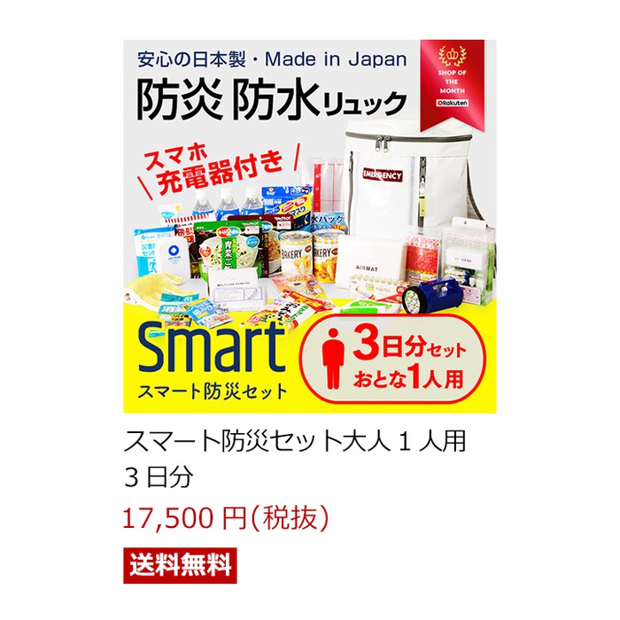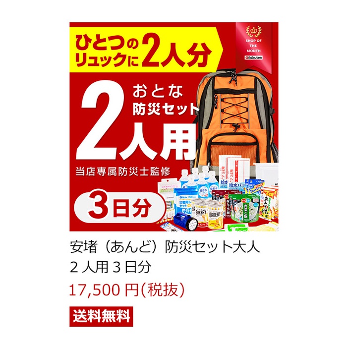 지진 직후부터3일간을 살아가기 때문에,어른1명 분과 자녀분들1명 분이 세트가 되어 있습니다.