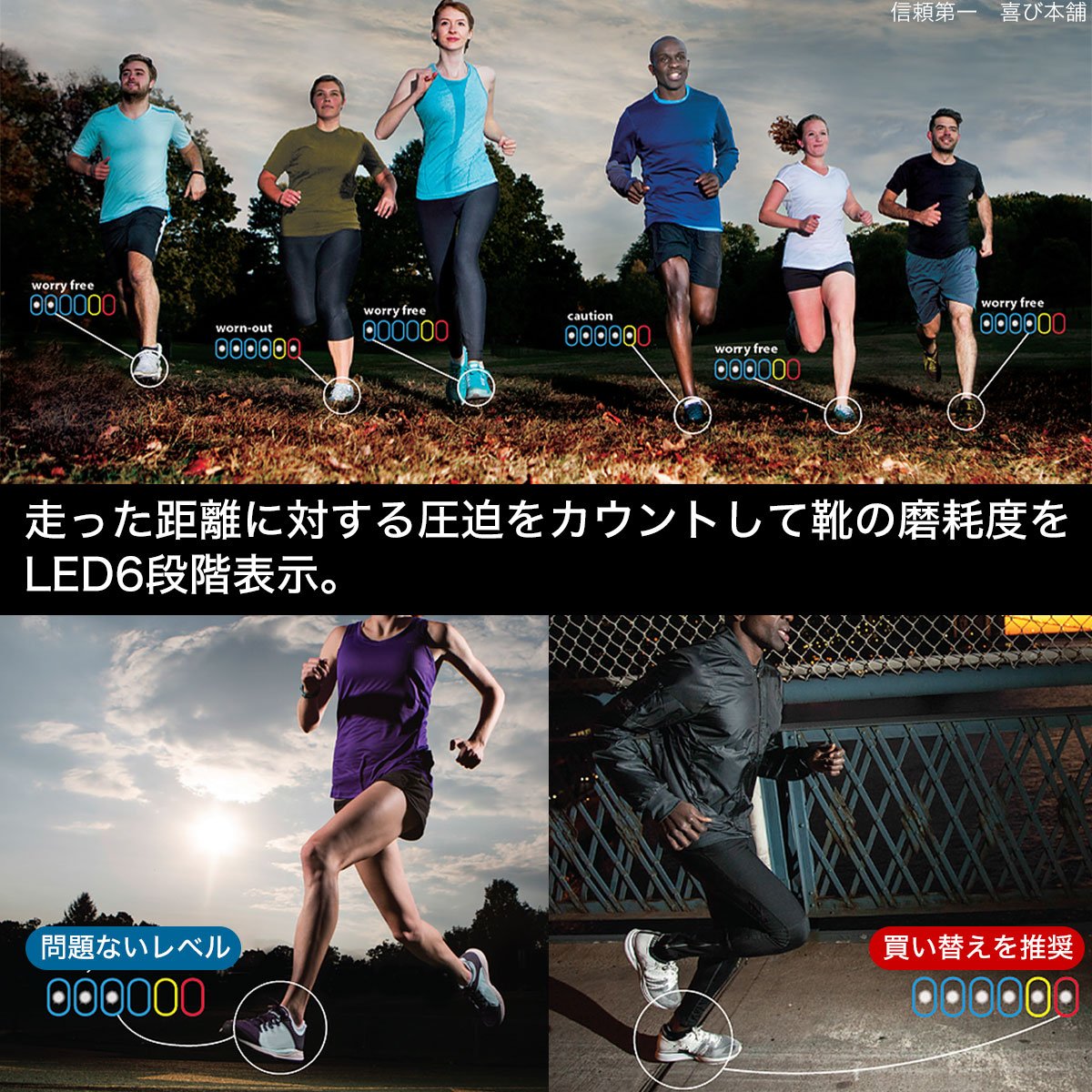 Count the compression against the distance you ran and show the degree of abrasion of the shoe in 6 steps with the LED lamp.