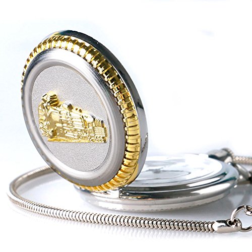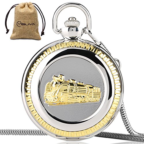 -. Binding : Watch -. Brand : MILIYA -. Color : silver -. Department : Mens -. EAN : 0611188267026 -. Feature : Vintage Gold-tone Locomotive Train Design Distinguished Style / High Quality and Precise Quartz Movement, / Full Hunter Pocket Watch with Arabic Numeral Display / Come with YISUYA Gift Bag and a High-grade Chain, Great Gift for your Famliy, Friend, Lovers / Setting Time: Pull the Crown Away From Base of the Watch and Turn the Crown Clockwise Until Reaching the Exact Time -. Label : MILIYA -. Manufacturer : MILIYA -. Model : MLY051 -. MPN : 4331782677 -. PackageQuantity : 1 -. PartNumber : 4331782677 -. ProductGroup : Watch -. ProductTypeName : WATCH -. Publisher : MILIYA -. Studio : MILIYA -. Title : Vintage Train Railroad Conductor's Locomotive Quartz Pocket Watch Roman Numberal with Chain -. UPC : 611188267026