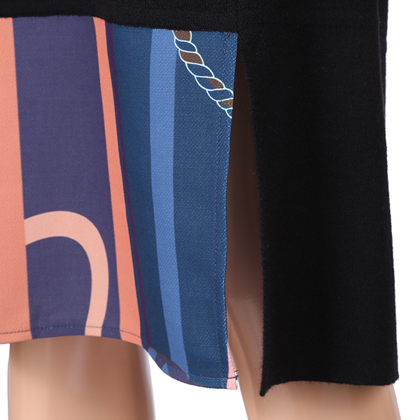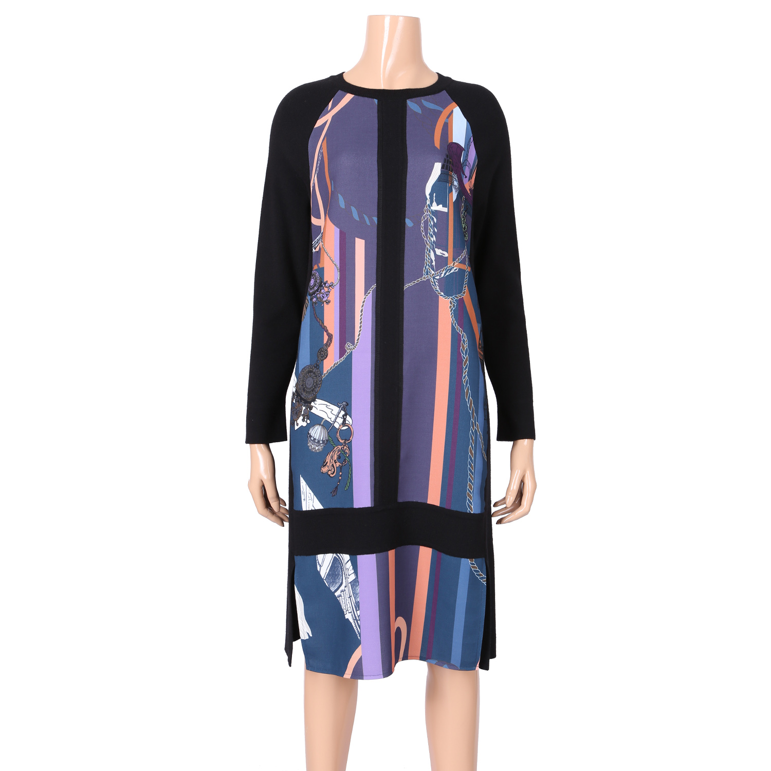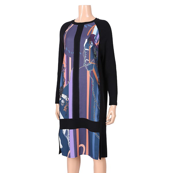 단아하고정갈한 원피스스타일의 세련된프린트배색롱니트