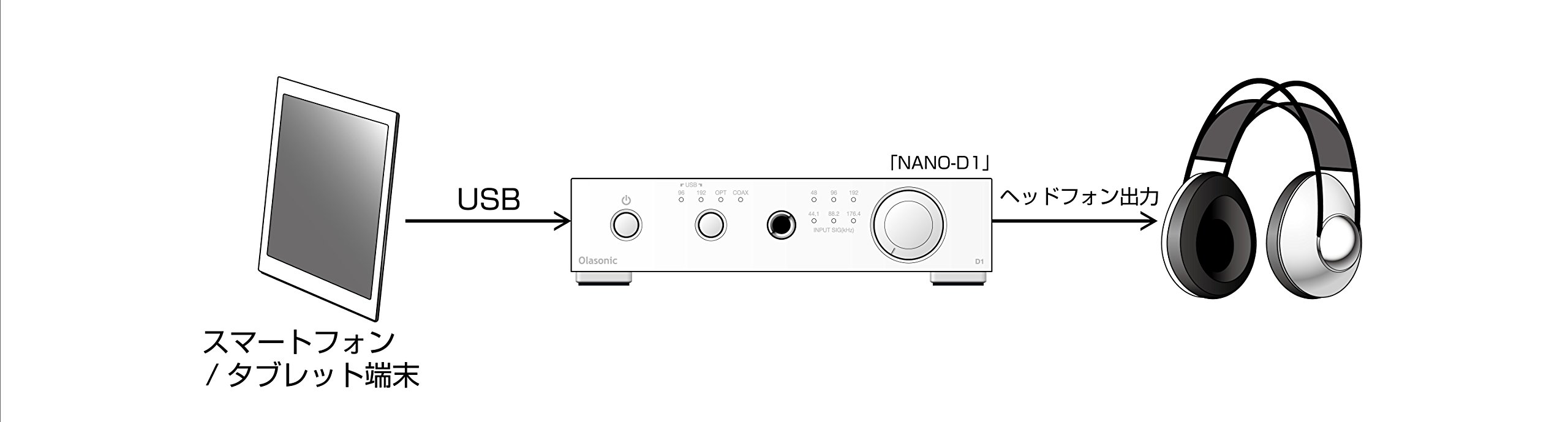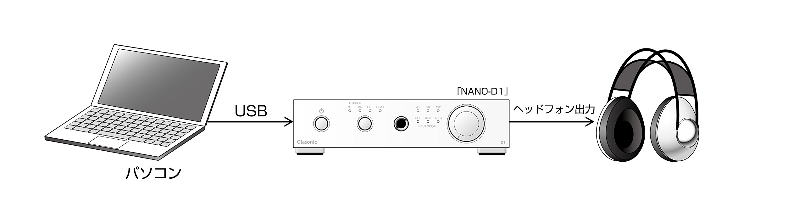 NANO-D1 can enjoy high sound quality without driver installation up to 96 kHz / 24 bit.