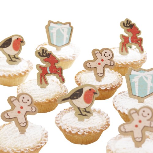 Studio : Ginger Ray Publisher : Ginger Ray Binding : Kitchen Product Description A pack of 12 mince pie / cupcake toppers. Spruce up those mince pies with these vintage stamped effect toppers. Use the sticks in mince pies or to decorate cupcakes. The pack contains three gingerbread men, three robins, three deer and three present toppers. Watch your family and friend's expressions when you give them a mince pie with one of these decorations on them! And how do you think Santa will feel seeing Rudolph The Reindeer on his mince pie on Christmas Eve?! Decorations are approx. 6cm(H) x 4cm(W)The product is manufactured in China. 0
