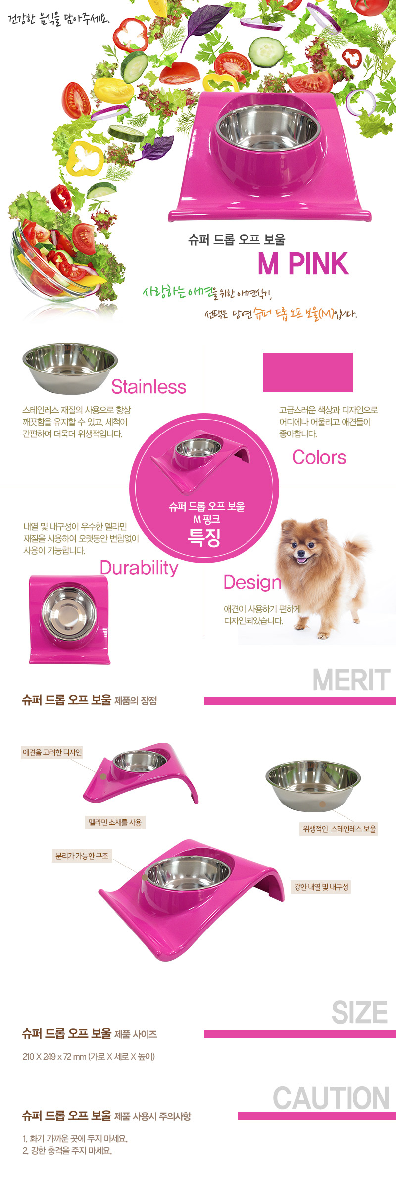 Drop-off Bowl M Pink Sten bowl Pet puppy cat dog food dogs super