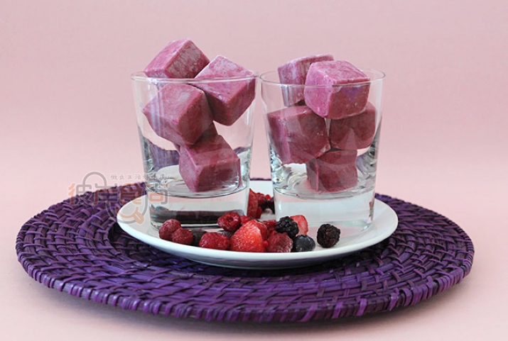 将胡萝卜切成小块,放入蒸锅蒸熟,取出放入搅拌机搅拌,再加水调稀释度, 然后放入冰格进入冰箱,结块之后即可取出食用。