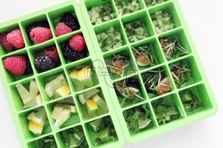 冰格共有15个小立方格,每个小格等于1盎司液体。 冰格除了用来制作冰块,还可以…… 水果或开胃品也可以装入冰格模具中,比如覆盆子、薄荷、柠檬片、无花果等等。