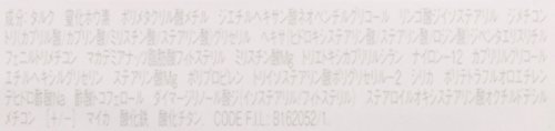 전성분:talc,질화《호우》소,폴리 메타크릴산 메칠,더 에틸 헥사《》산 네오 벤치《루구리코루》,사과산 더 ISO steer re《루》,더《메치콘》,새(커브 re《루》산/커브 인산/밀리 스틸산/스테아린산)글리세릴,헥사(《히도로키시스테아린》산/스테아린산/rosin산)더 #《다에리스리치루》,회《니루토리치멘》,《마카데미아낫츠》지방산《후토스테리루》,밀리《스친》산Mg,새《에토키시카푸리리루시란》,나일론-12,커브 re re《루구리코루》,에틸《헤키시루구리세린》,스테아린산Mg,폴리프로필렌,토리이(Torii) 소 스테아린산 폴리 글리세릴-2,실리카,폴리 tetra 풀《오로에치렌》,《데히도로》초산Na,초산 토코 fellow《루》,다이 merge 리놀산 더(ISO steer re《루》/《후토스테리루》),스테 alloy《루오키시스테아린》산 오크 냉동《데시루》,《메치콘》,[+/-],my car,산화철,산화 티타늄(티탄)