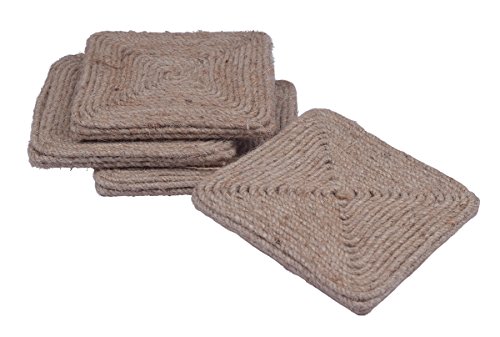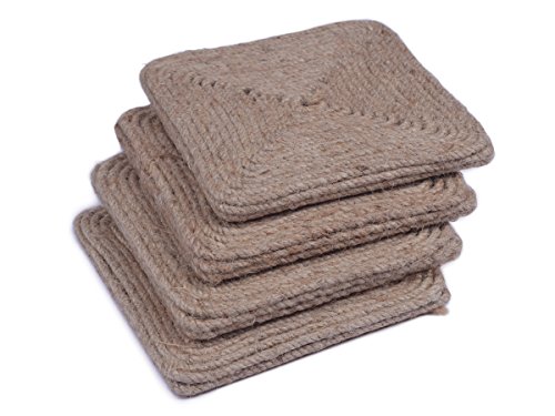 ECO-FRIENDLY TOUGHNESS: This set of four square coasters is made out of jute and has a packed dense texture. It also has a solid base of MDF within to provide additional strength.