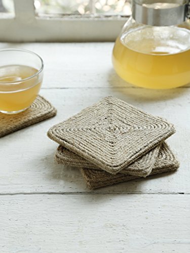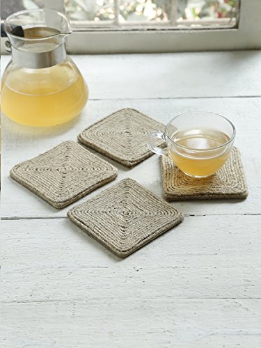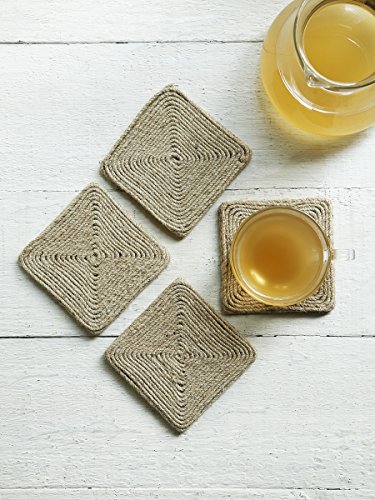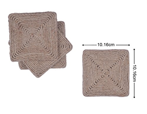 Absorbent Drink Coasters Set of 4 Handmade Jute Square Coaster for Tea Coffee Beer Glass Dining Accessory