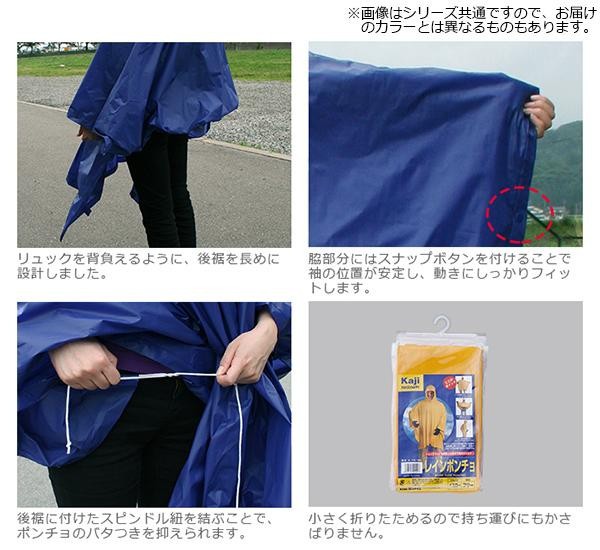 | 突然の雨でもすぐに着用できる、かぶりタイプのポンチョです。 |