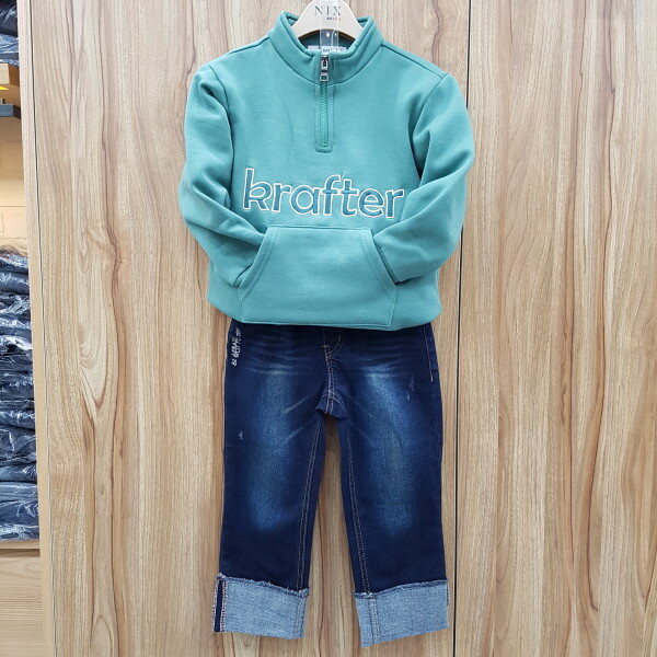 다크톤의 인디고 컬러감,백면에 기모효과를 주었고 포켓 아래쪽 깔끔한 레터링자수로 디테일 포인트를 준 스타일