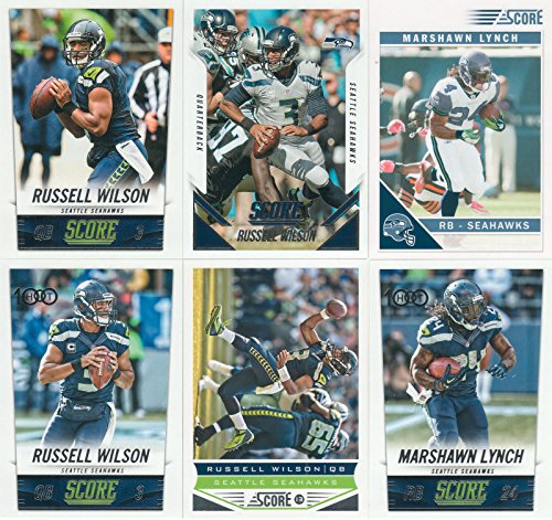Seattle Seahawks 6 Card Gift Lot Including 4 Different Russell Wilson and 2 Different Marshawn Lynch Cards with 2015 Score Cards and Others