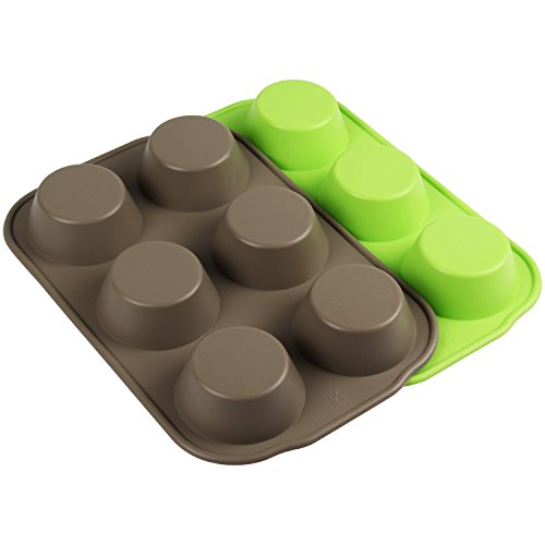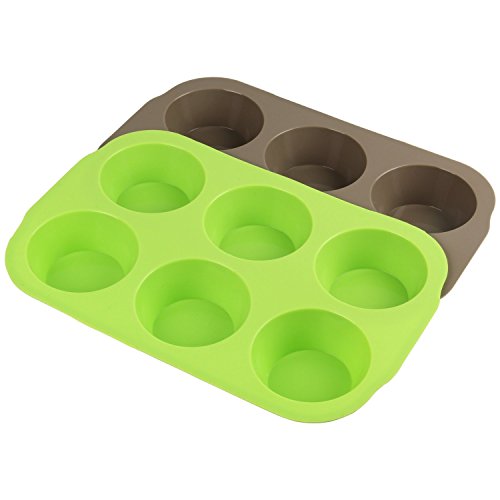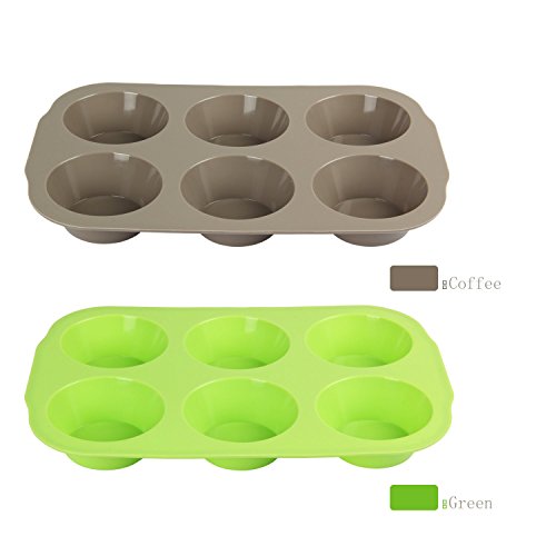 -. Title : Yilove 6 Cup Silicone Muffin Pan,Set of 2 (Coffee brown and Lemon green)