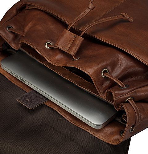 -. Feature : Measurement approximately 13.5" ( L ) x 16" (H) x 5" (W). This Vintage backpack is fashionable enough to be carried for every day use. / This classic retro vintage backpack will last for years to come,handmade by professional artisans. / Backpack includes a roomy main compartment with a flap over closure. The spacious functionality allows holding a variety of everyday essentials including laptop, Ipad, mobile phones, cosmetics, camera, books, lunch boxes and many more things which makes this backpack perfect for hiking, college, work, travel, camping or any other adventure. / Finelaer bags are practical, long lasting and a great value. It is a perfect collection for the person seeking traditional good looks with a non trendy modern flair and is ideal for family and friends. / Our leather, will occasionally have unique characteristics such as small scars, creases and variations in the color which are not defects but natural features of genuine leather.