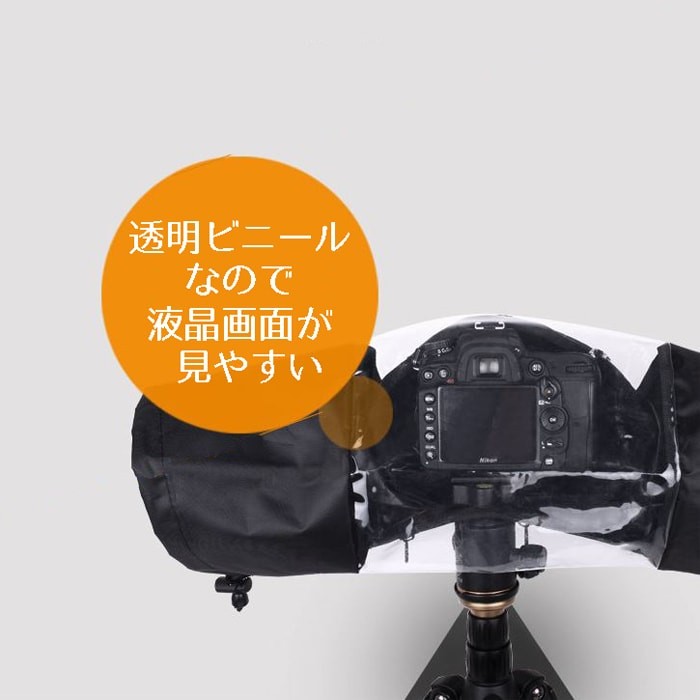 送料無料でお届け雨の日や雪の日、砂ぼこりがひどい時に大活躍。 雨、埃、砂、雪などから一眼レフカメラを守ります。 折りたたんで持ち運べるので急な雨でも大丈夫。 背面は透明のビニール製なので液晶画面をしっかり確認できます。 両サイドは手を入れることができるので、手を入れて操作が可能。 ※レインカバーのみとなります。カメラ及び三脚などは付属しません。
