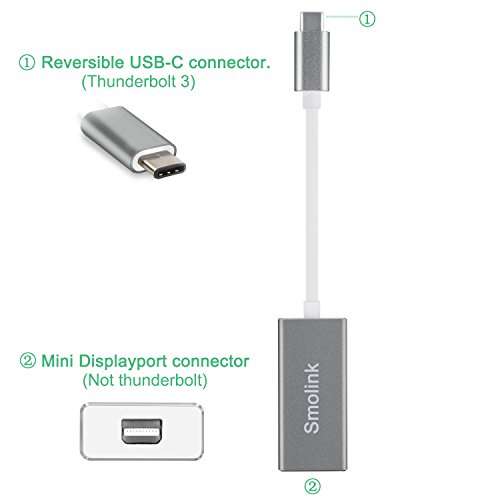 USB-C to Mini Displayport Adapter for Macbook Pro 2017, Smolink USB 3.1 Type C to Mini-Displayport Adapter Cable 4K 60Hz for Macbook Pro 2016, ChromeBook Pixel - Grey