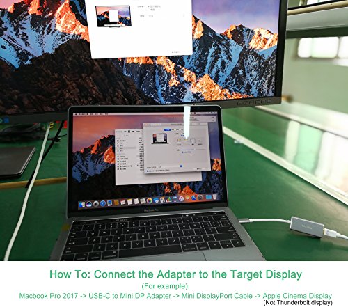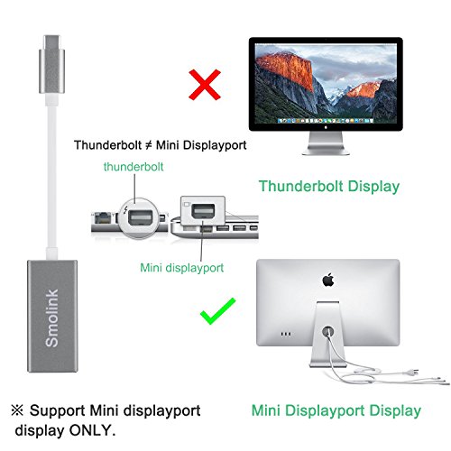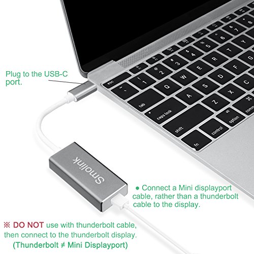 USB Type C to Mini Displayport adapter connects your USB-C computer(laptop) to the monitor or projector which has a mini displayport input. ※IMPORTANT:※ DO NOT use with thunderbolt cable, then connect to a thunderbolt display(Like Apple Thunderbolt Cinema Display), Thunderbolt ≠ Mini Displayport.