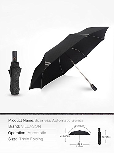 -. Brand : VILLASON -. Feature : ★UNIQE SAFETY DESIGN: The stylish reflective edge delivers high visibility during low light and rainy conditions. Alert passing cars to keep away from the umbrella user. / ★QUICK-DRYING: The fabric of canopy is super water repellent that make your umbrella repels water and dry fast. The water touches the umbrella surface will become small drops of water, / ★FAST AUTO OPEN AND CLOSE: One Second One Hand Operation. Don't wait another second to open the umbrella when you get out from your car in the rains, Especially Heavy Rains. / ★QUALITY MATERIALS: Umbrella canopy is made with 210T polyester and coated. Fortified frame is made with 8 durable fiberglass ribs. Rubberized grip keeps the handle secure and slip-free in your hand. / ★VILLASON GURANTEE: For whatever reason, If you are not 100% satisfied, simply contact us to return the umbrella. We will give you a full refund or send you a replacement. -. Label : VILLASON -. Manufacturer : VILLASON -. Model : VILLASON 0002 -. PackageQuantity : 1 -. ProductGroup : Lawn & Patio -. ProductTypeName : OUTDOOR_LIVING -. Publisher : VILLASON -. Studio : VILLASON -. Title : VILLASON UPF 40+Anti UV Auto Open/Close Windproof & Waterproof Compact Travel UmbrellaTriple FoldingSturdy Windproof Canopy with Unique Reflective Strips13oz-Ultra slim and light
