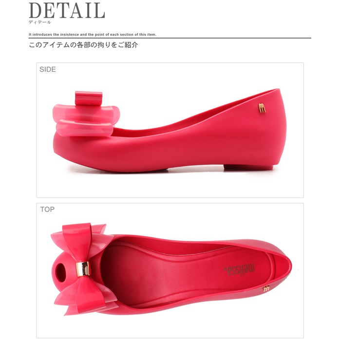 상기 사이즈는,동일의 상품을 몇 점 입어본 평균치입니다.상품 에 따라서는 개체 차이가 있기 때문에 오차가 나오는 일이 있습니다.또한측정 방법 로 인해도 오차가 생기기 때문에,미리 승낙 주신상 요구해 주세요.1979년에 브라질에서 설립되었습니다.후루츠 의 향기가 하는 비닐제의 레이디스 샌들을 중심으로 한 브랜드.MELISSA오리지날의 디자인뿐만 아니라,세계의 저명 디자이너나 스타일리스트와의 콜라보레이션의 디자인도 많이 발표되어 있습니다.