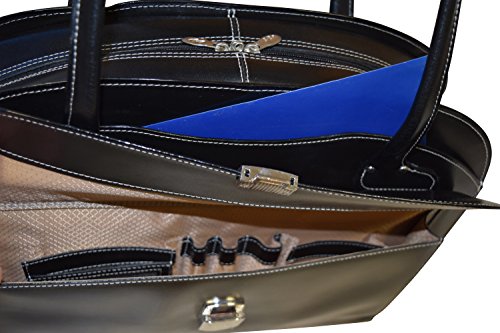 -. Binding : Electronics -. Brand : McKleinUSA -. Color : Black -. EAN : 0758576909257 -. Feature : Made of high quality stylish genuine Italian leather / Fully lined interior exclusively designed with a zippered divider and a padded laptop compartment that fits most laptops with up to 15.6" screen. / Large front pocket with high quality lock features a complete organizer designed to hold cell-phones, pen, business cards and other accessories / Front and back slide-in pockets are perfect for folders and important documents / Product dimensions: 16.75"W x 12.25"H x 4.5"D. Laptop compartment dimensions: 15"W x 9.25"H x 2"D -. Model : 5771641 -. MPN : 5771641 -. PartNumber : 5771641 -. ProductGroup : PC Accessory -. ProductTypeName : COMPUTER_COMPONENT -. Title : McKlein USA Genuine Leather Women's Briefcase - 15.6" Laptop Business Tote Black -. UPC : 758576909257