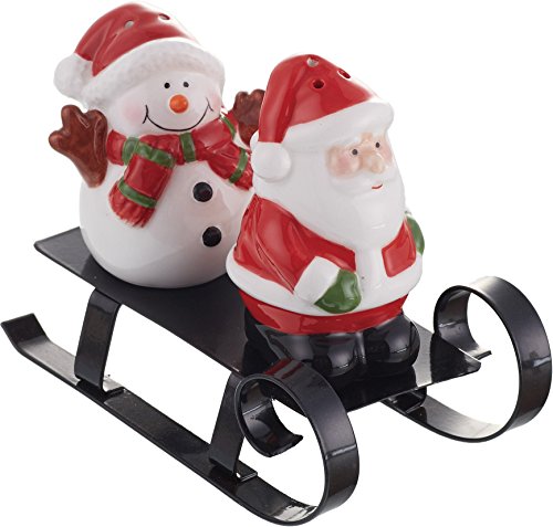 Ceramic Christmas Salt and Pepper Shaker Set - Santa, Snowman and Metal Sled