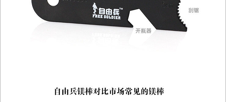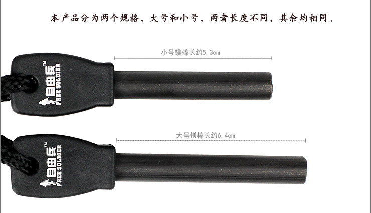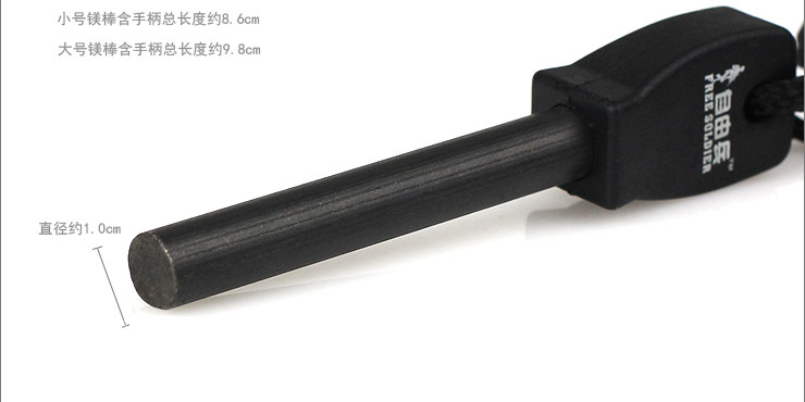 When it comes to outdoor survival everyone in flint, they often block with magnesium, magnesium rod confused. In fact, the main component of the magnesium block is pyrophoric American, magnesium combustion can act on one side, the same block is ultimately American magnesium flint, some need to be cut when using magnesium turnings, and then the igniter flint . The outdoor flint, and only a small proportion of magnesium, magnesium block not only with American metal shavings like to re-ignite under rub, scratch more quickly through direct ignition firelighters.