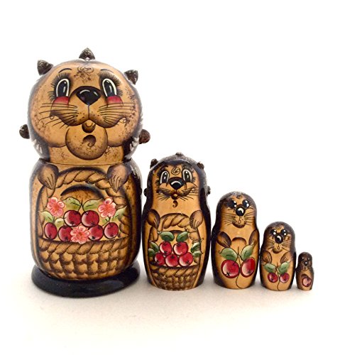 -. Title : Hedgehog nesting dolls Russian Hand Carved Hand Painted 5 piece matryoshka Set