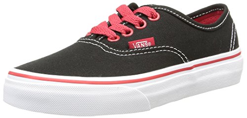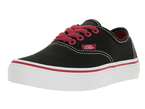 Vans Kids Authentic (Flame) Black/Racinfg Red Skate Shoe 12 Kids US