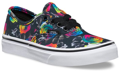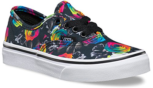 VANS Kids Authentic (Rainbow/Floral) Black/True White VN0004J1JPJ Youth 11.5