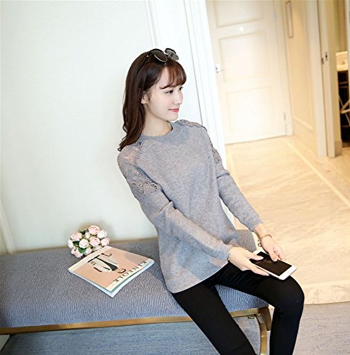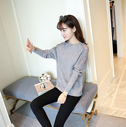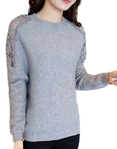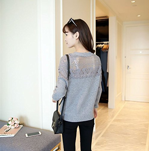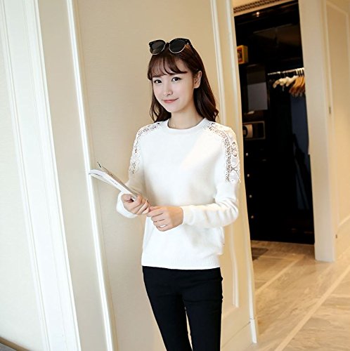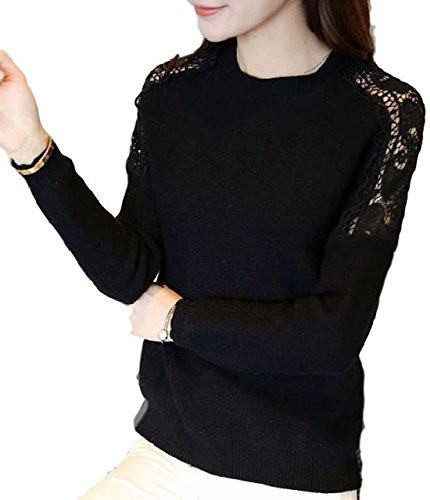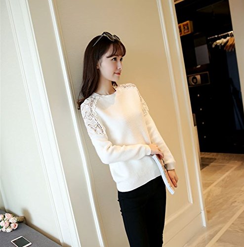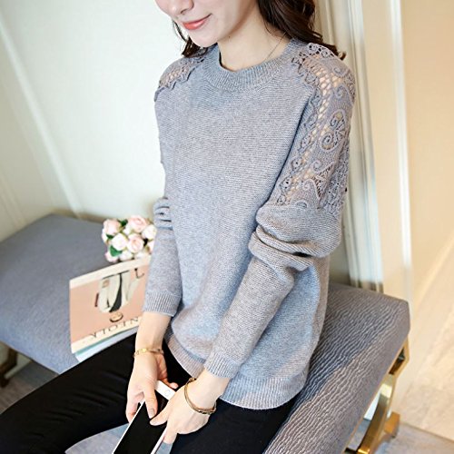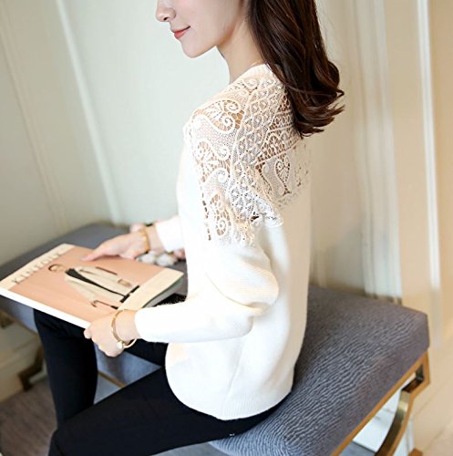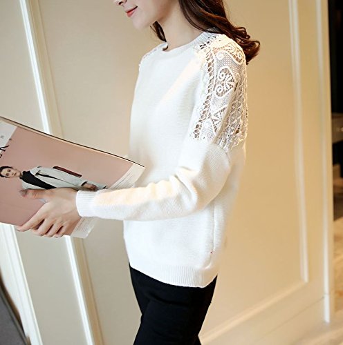 -. Title : (カナクレール)Canacreer ニット クロシェ レース 切替 レディース トップス 長袖 丸首 無地